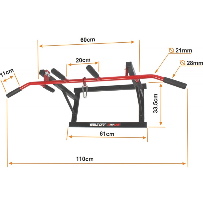 Na każdym uchwycie zastosowano gumowe rączki zapobiegające ślizganiu się rąk podczas wykonywania ćwiczeń. Dodatkowo drążek posiada demontowalny uchwyt na worek bokserski lub inne akcesoria do powieszenia.
