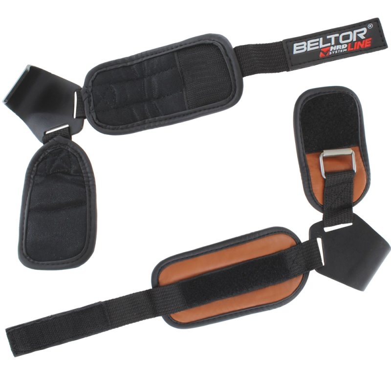 Część materiałowa haków pokryta została gładką i bardzo wytrzymałą skórą, a zastosowane zapięcie na rzepy pozwala na płynną regulację i idealne dopasowanie do każdego przegubu dłoni.