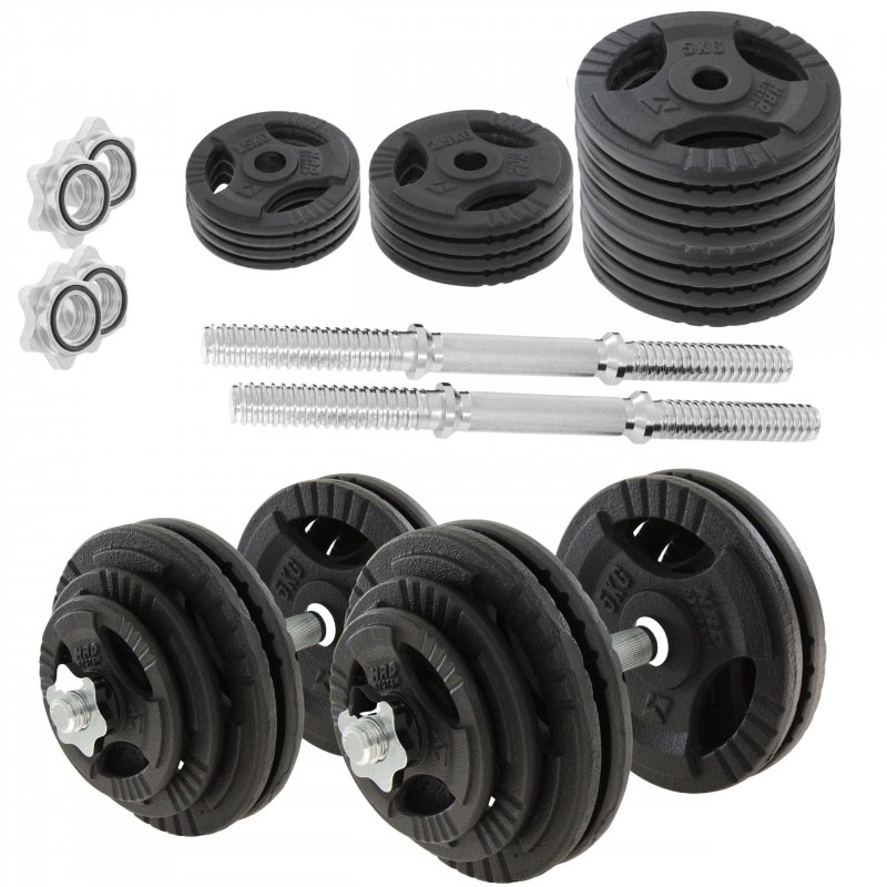 HRD Regulowane hantle żeliwne 2x 30kg + zaciski