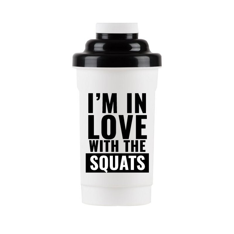 Plastikowy szejker do odżywek 0,6 L z motywującym hasłem IM IN LOVE WITH SQUAT