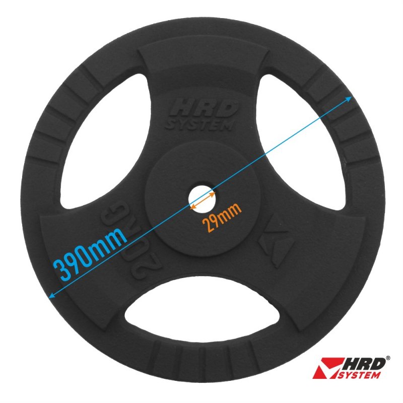 Obciążenia wykonane z wysokiej jakości żeliwa, dzięki czemu sprawdza się zarówno w siłowniach komercyjnych i domowych. Powierzchnia zabezpieczona specjalną farbą.