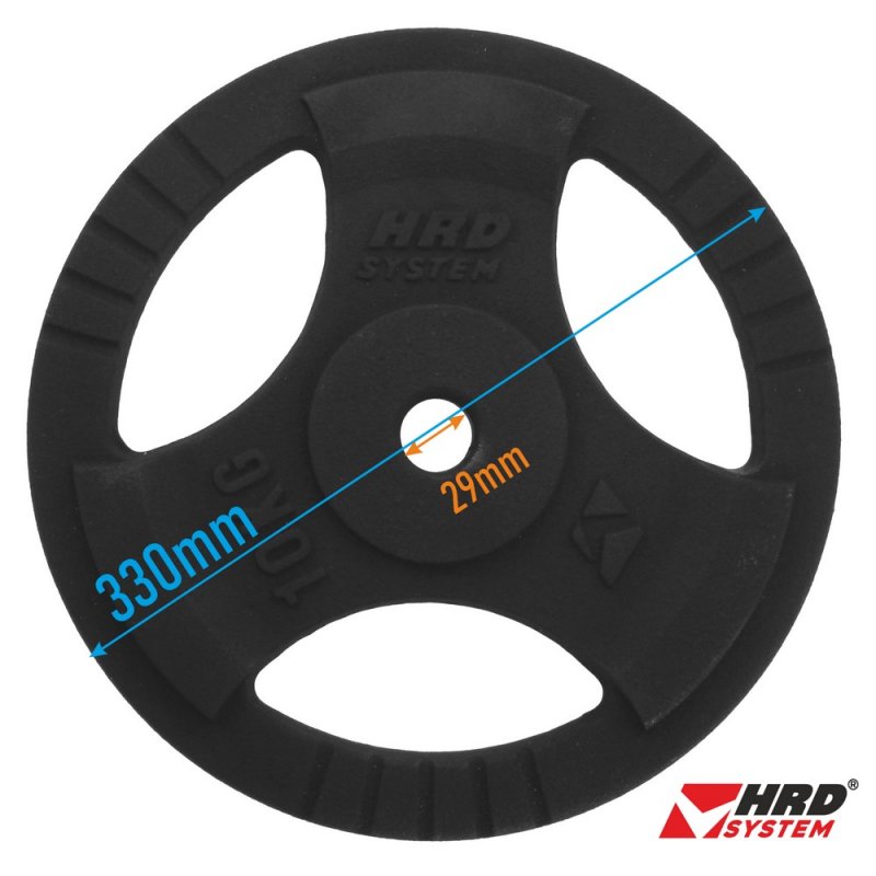 Obciążenia wykonane z wysokiej jakości żeliwa, dzięki czemu sprawdza się zarówno w siłowniach komercyjnych i domowych. Powierzchnia zabezpieczona specjalną farbą.