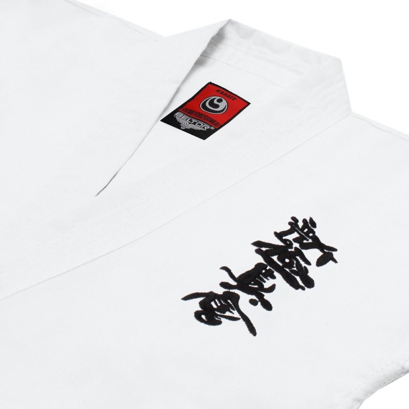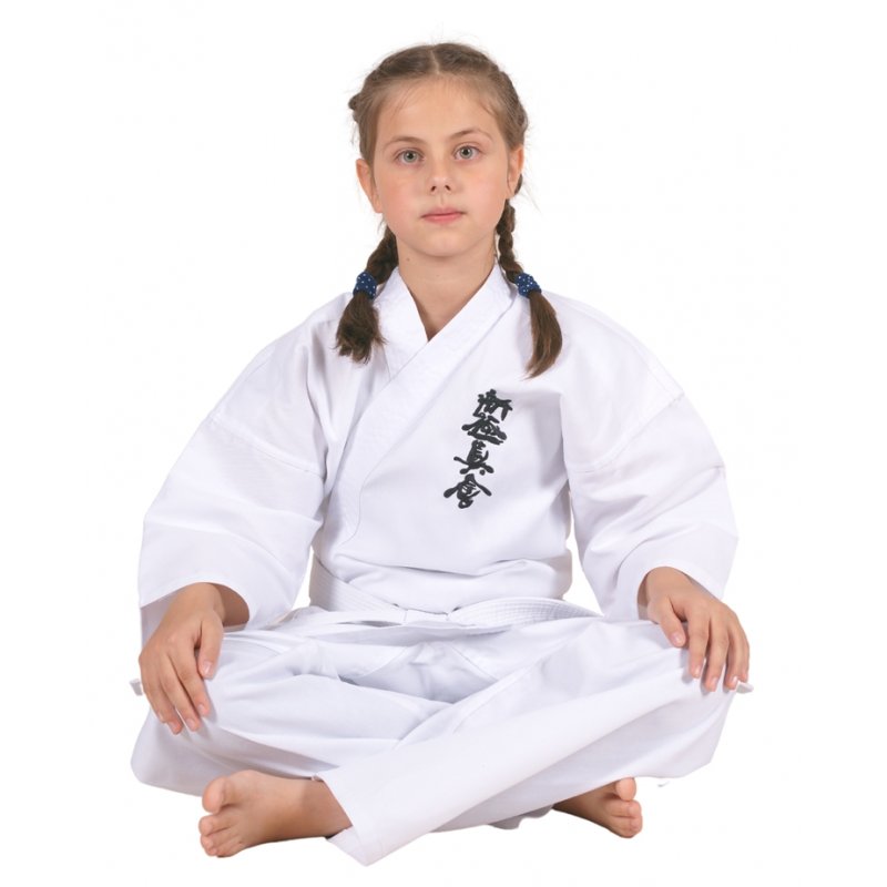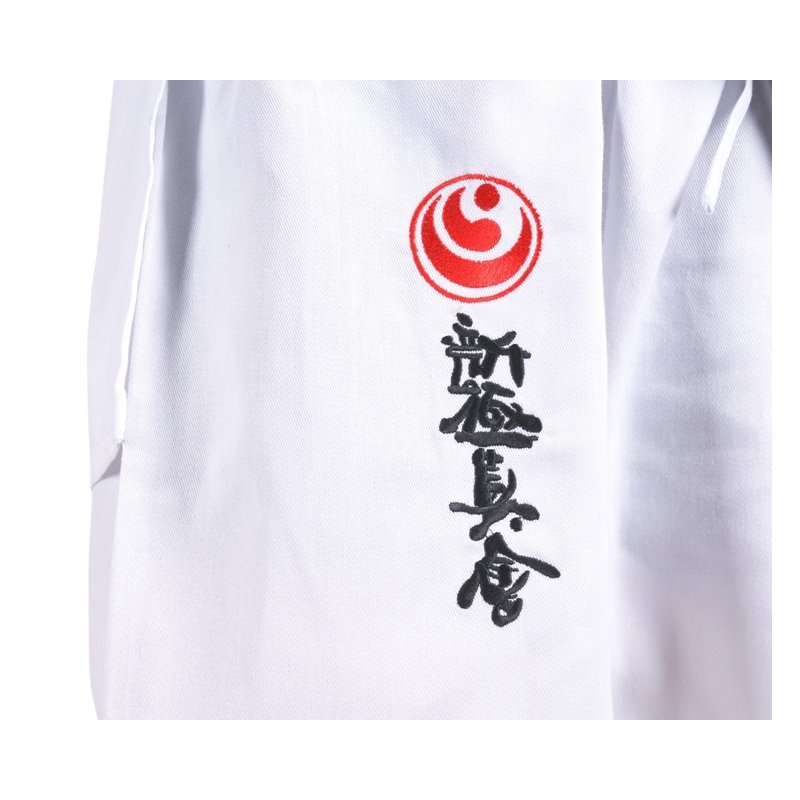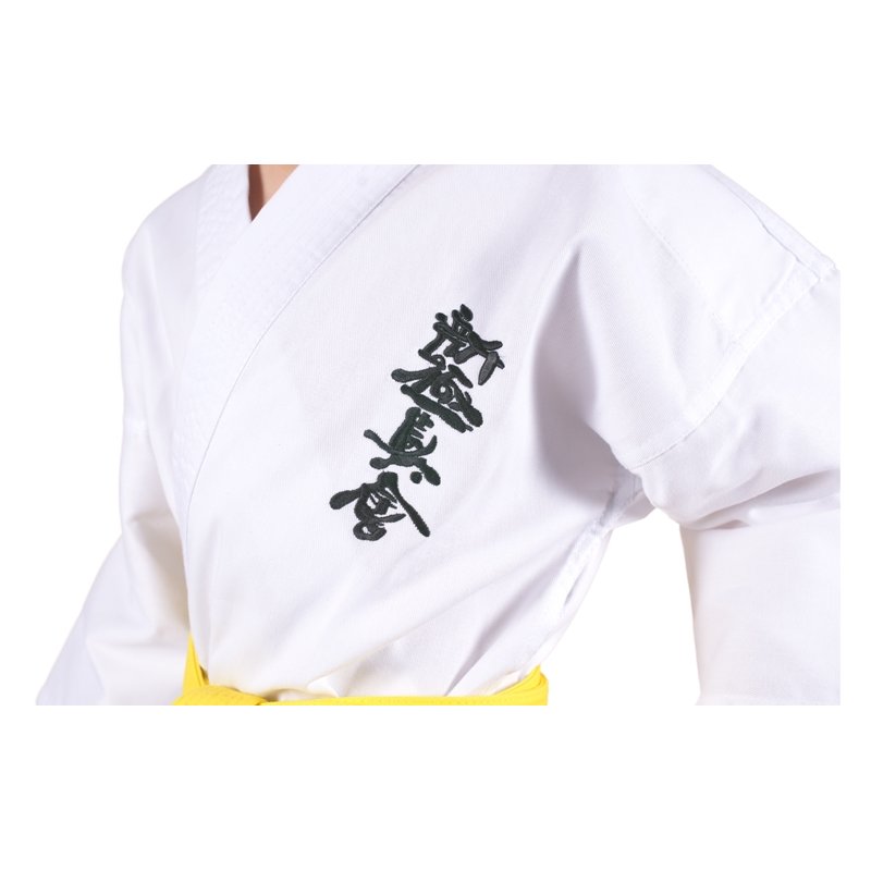 Klasyczna bluza kimona Shinkyokushinkai z szerokimi rękawami o długości ¾ i czarnym haftem na lewej piersi. Małe estetyczne detale na skrajnym przeszyciu kimona oraz na karku dodają charakteru karategi! Dla usztywnienia kimona, mankiety rękawów oraz wewnętrzne obszycie bluzy wzbogacone są o kilkukrotne mocne szwy łączące poszczególne elementy karateGi, co zapewnia dużą odporność na uszkodzenia i wyjątkową trwałość!