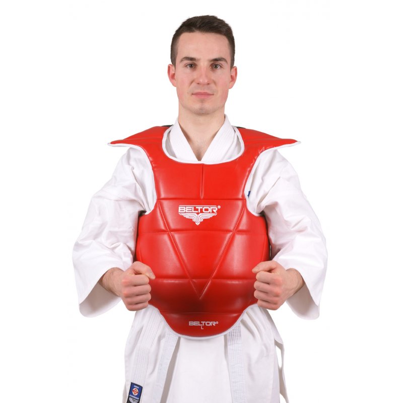 Profesjonalny ochraniacz tułowia HOGO przeznaczony do treningów karate. Dwustronny w kolorze czerwono-białym, wykonany z najwyższej jakości materiałów.