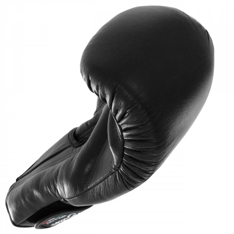 Ręcznie wykonane rękawice bokserskie z najwyższej jakości włoskiej skóry bydlęcej. Dokładne wykonanie oraz zastosowanie materiałów spełniających wymagające włoskie standardy zapewnia długą żywotność rękawic. Zamknięty profil rękawicy zapobiega wybiciu podczas silnych uderzeń. Idealne dopasowanie do dłoni zapewnia maksymalny komfort i wygodę podczas treningów minimalizując ryzyko wystąpienia kontuzji.