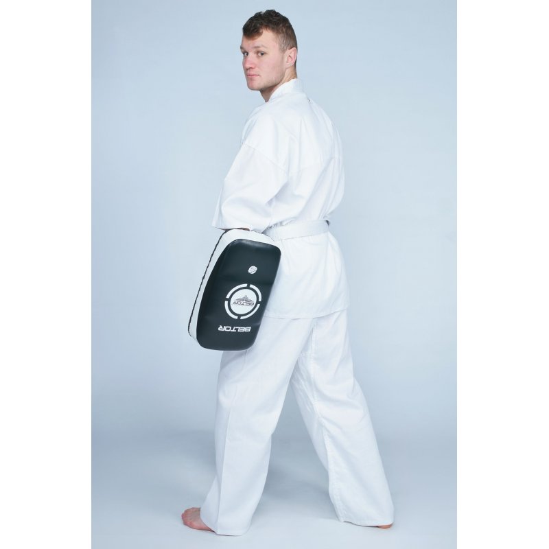 Idealnie nadaje się do technik ręcznych i nożnych. Tarcza wykonana została ze skóry naturalnej, która jest odporna na zrywanie i rozciąganie. Jej wnętrze wypełnia wielowarstwowy regenerat, którego cechą jest bardzo dobra amortyzacja uderzeń oraz długa żywotność. Wyposażona została w system mocowań i uchwyt, które zapewniają ogromną stabilizację podczas trening. Zastosowane zapięcia na rzep pozwalają na pełną regulację dzięki czemu tarcza będzie idealnie dopasowana
