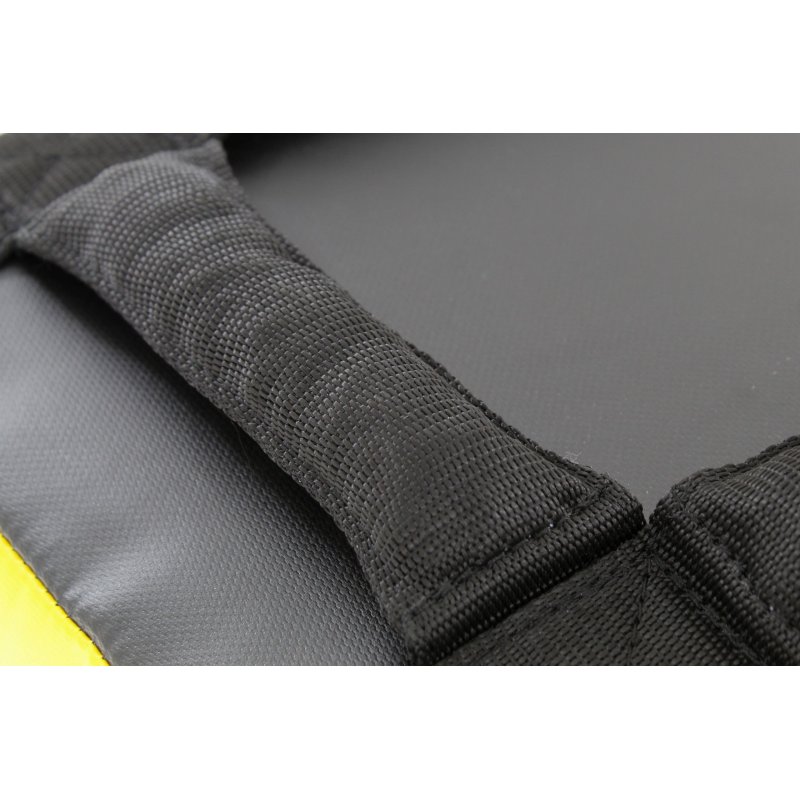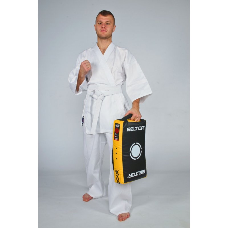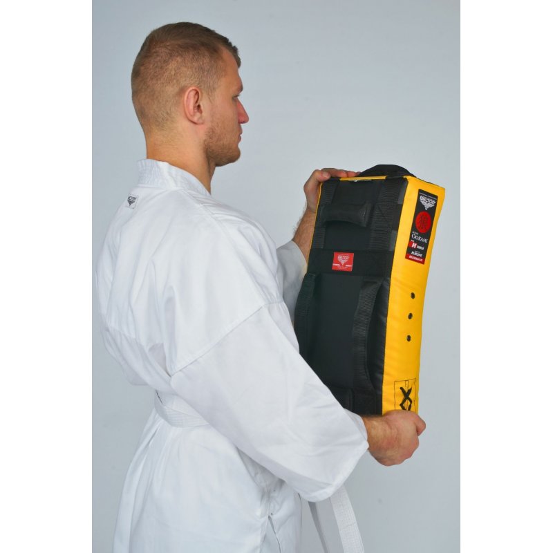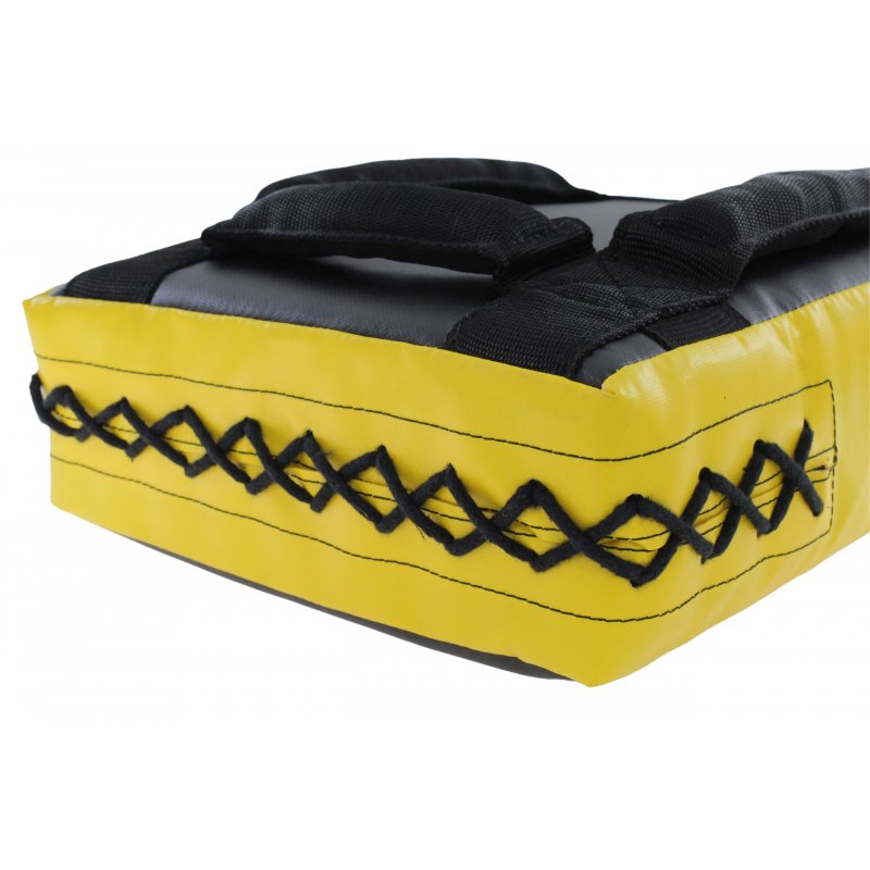 Dzięki mnogości uchwytów tarcza jest wielofunkcyjna i bardzo wygodna podczas treningu. Grubość rączek idealnie dobrana aby chwyt był mocny i stabilny. W rączkach zamiast klasycznego szlaufa zastosowano tekstylne wypełnienie, które jest zdecydowanie bardziej komfortowe dla dłoni. Szycie kopertowe oraz szerokie pasy mocujące sprawiają że tarcza jest bardzo wytrzymała i przetrwa nawet najbardziej intensywny trening!