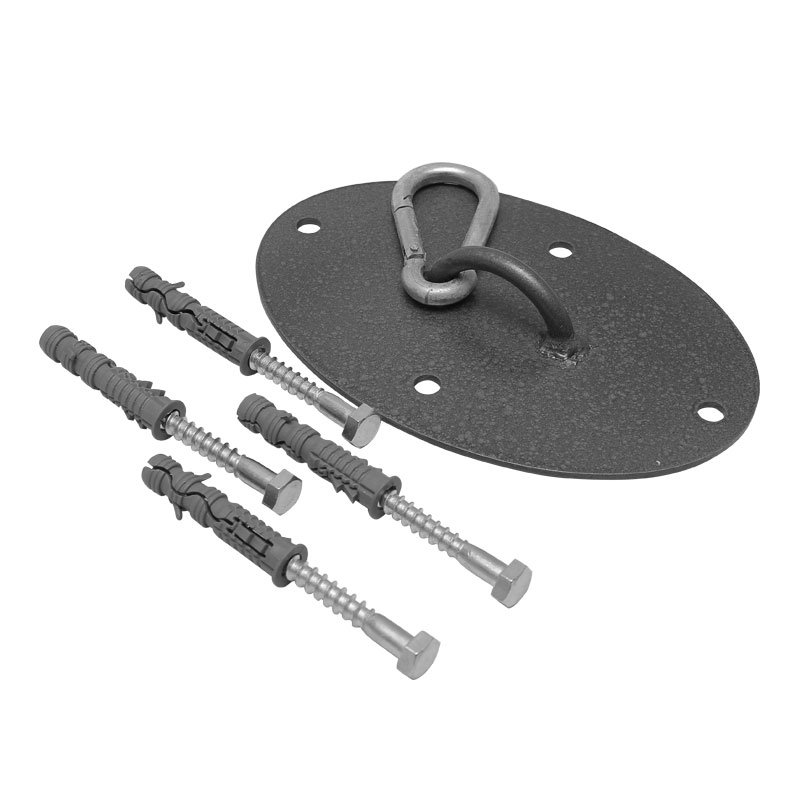 Mocowanie wykonane zostało z wysokogatunkowej stali nierdzewnej, posiada karabińczyk poprawiający komfort treningu. Montowane jest do sufitu za pomocą czterech kołków rozporowych dołączonych w komplecie.