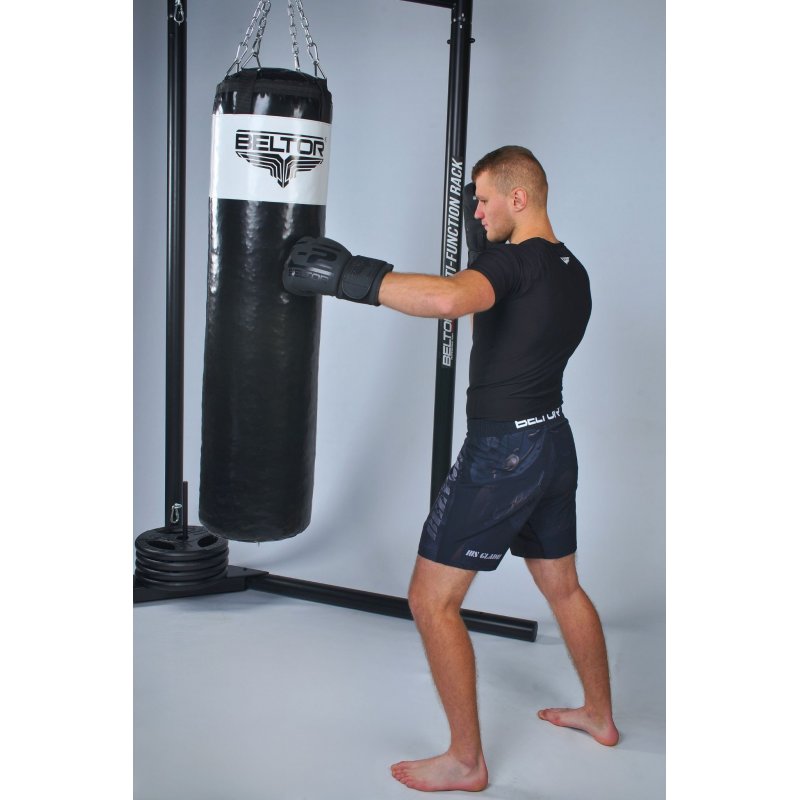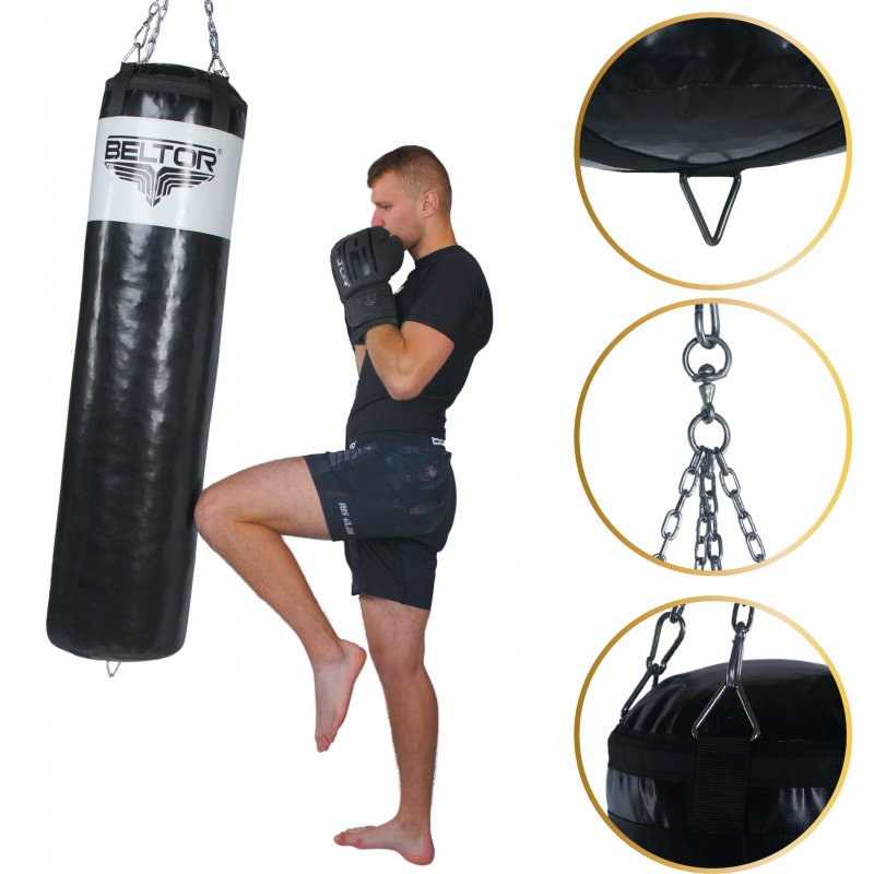 Worek sprzedawany jest wraz z wypełnieniem, dzięki czemu po zakupie od razu jest gotowy do użytkowana. Łańcuch mocowany za pomocą karabińczyków zapewnia możliwość regulacji wysokości worka dzięki czemu można unieść go jeszcze wyżej niżeli maksymalna długość łańcucha!