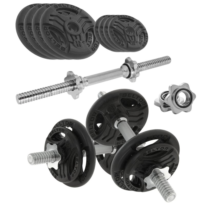 Regulowane hantle Beltor pozwalają na regulację wagi hantli, dzięki czemu możesz zwiększać progres treningowy. Obciążenia wykonane z wysokiej jakości żeliwa i zostały starannie wykończone. Sprawdzą się zarówno w siłowniach komercyjnych i domowych. Powierzchnia zabezpieczona specjalną farbą.