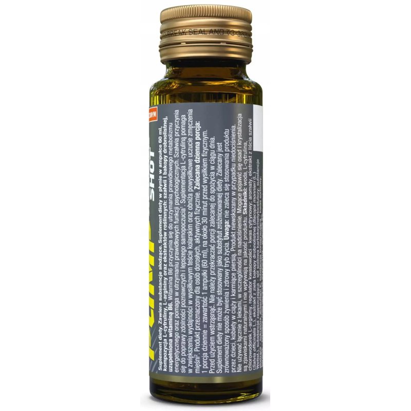 Stosowanie: Zalecana dzienna porcja: 1 porcja dziennie = zawartość 1 ampułki (60 ml), którą należy spożyć na około 30 minut przed wysiłkiem fizycznym. Przed użyciem wstrząsnąć.