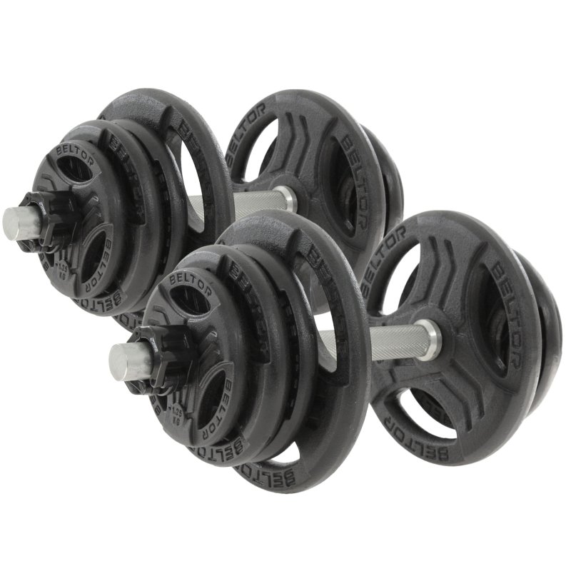 Regulowane hantle Beltor pozwalają na regulację wagi hantli, dzięki czemu możesz zwiększać progres treningowy. Obciążenia wykonane z wysokiej jakości żeliwa i zostały starannie wykończone. Sprawdzą się zarówno w siłowniach komercyjnych i domowych. Powierzchnia zabezpieczona specjalną farbą.