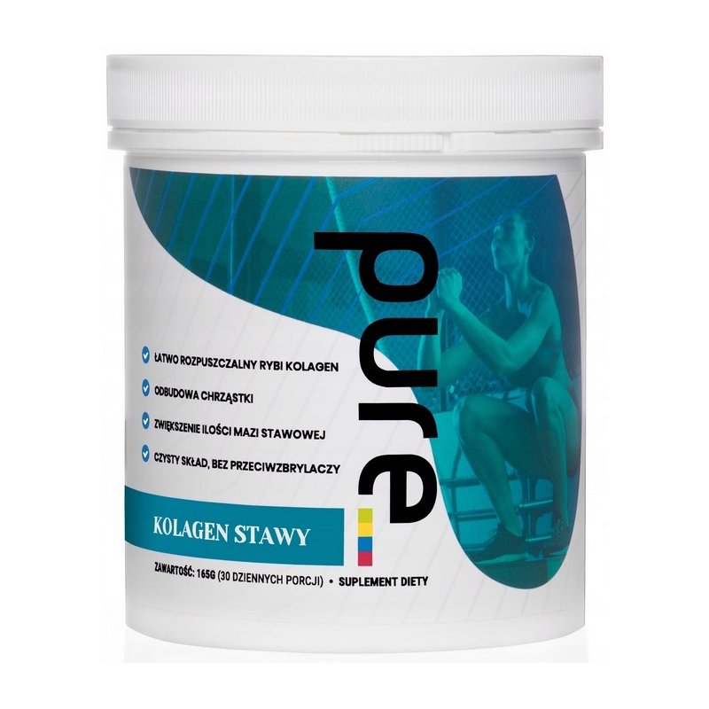 PURE, znaczy CZYSTOŚĆ! To słowo było myślą przewodnią podczas tworzenia tej marki produktów. PURE KOLAGEN STAWY to  łatwo rozpuszczalny kolagen rybi o wielkości cząsteczki około 1-2 kD. Produkt został wzbogacony w wysoką dawkę witaminy C. Oprócz kolagenu i witaminy C w składzie PURE KOLAGEN STAWY znajduje się również siarka organiczna MSM, glukozamina, chondroityny oraz kwas hialuronowy.