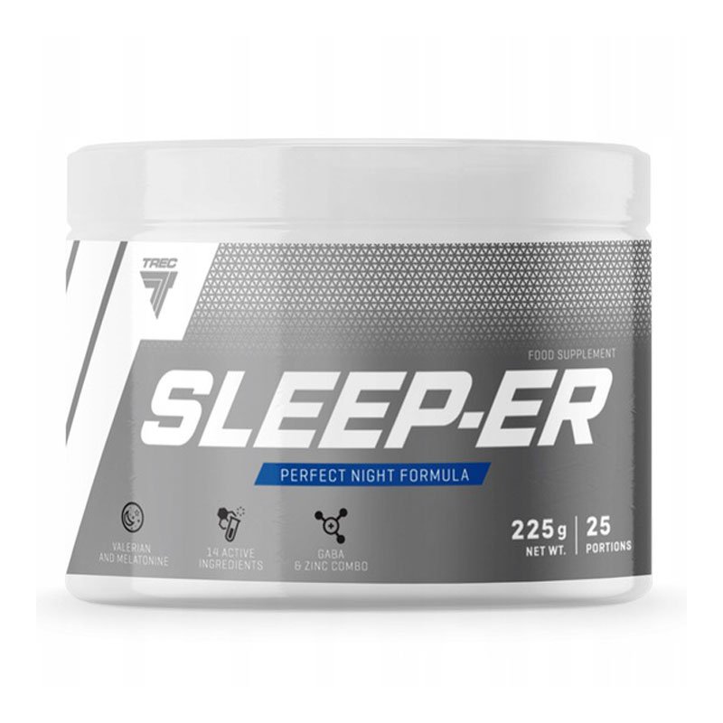 SLEEP-ER to kompleksowy suplement diety. Zawiera melatoninę, kwas D-asparaginowy (DAA) i kwas gamma-aminomasłowy (GABA), ekstrakty roślinne kozłka lekarskiego i melisy, aminokwasy i minerały.