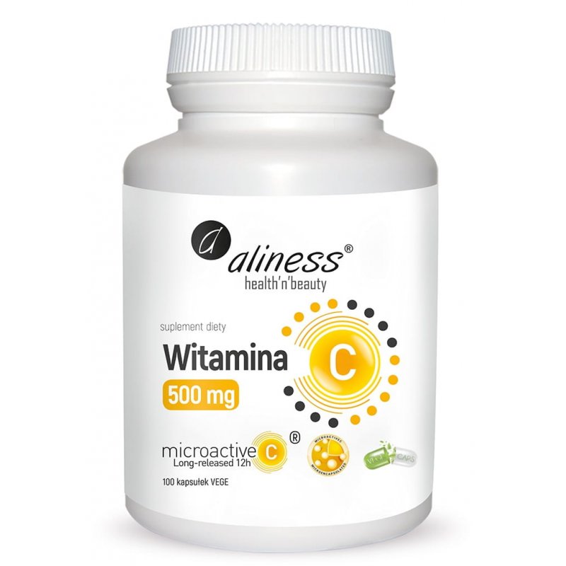 Składniki: Kwas L-askorbinowy (witamina C), otoczka substancji aktywnej: trójglicerydy o średniej długości łańcucha (MCT), wosk carnauba, celuloza, otoczka kapsułki (substancja wiążąca: hydroksypropylometyloceluloza).