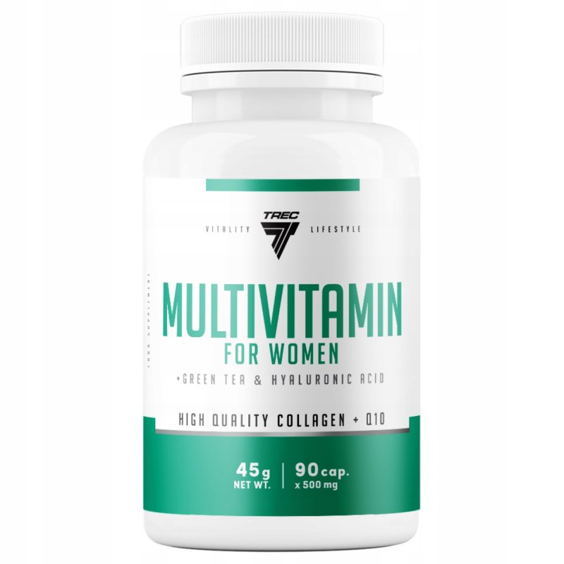 MULTIVITAMIN FOR WOMEN dodatkowo jest wzbogacony o kolagen, ekstrakt z zielonej herbaty, CLA, L-karnitynę, kwas hialuronowy i koenzym Q10.