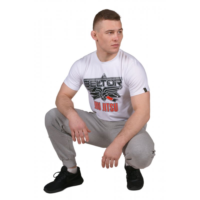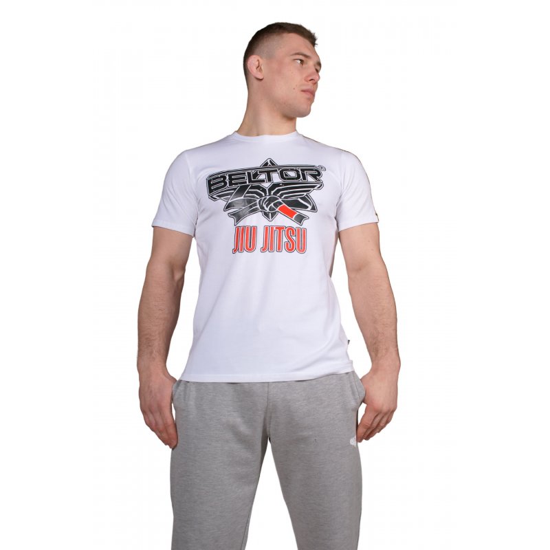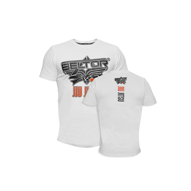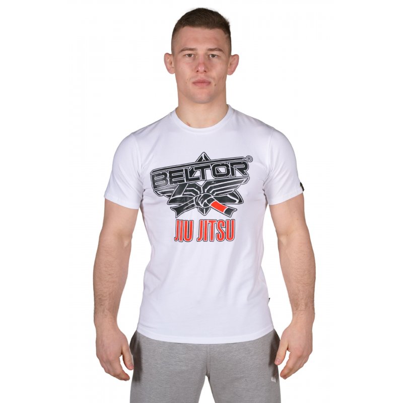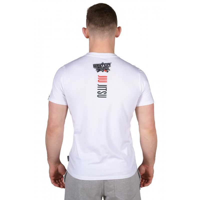 Wysokiej jakości bawełniany T-shirt męski o gramaturze 200 g/m2 z domieszką elastanu. T-shirt posiada ergonomiczny, sportowy krój Slim-Fit. Model charakteryzuje się dużą aplikacją na klatce piersiowej jak i na plecach. Nadruki wykonane zostały metodą sitodruku, dzięki któremu zostaną z Tobą na długo!