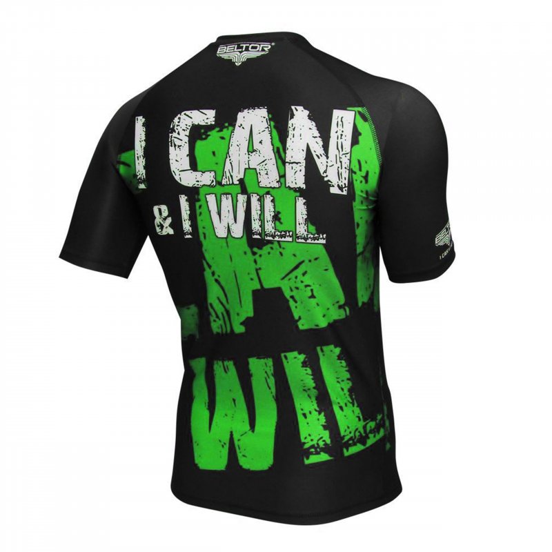 Rashguard I Can I Will z lini CompressionGear idealnie sprawdza się w przeróżnych dyscyplinach sportowych, w których ważna jest regulacja ciepłoty ciała oraz wytrzymałość materiału. Nadruk wykonany został metodą trwałej sublimacji cyfrowej. Odpowiednia kompozycja poliestru i elastanu (88%/12%) zapewnia idealne dopasowanie się do ciała, podnosi komfort użytkowania oraz zwiększa wytrzymałość odzieży. Nowoczesny design został wykonany metodą cyfrowej sublimacji.