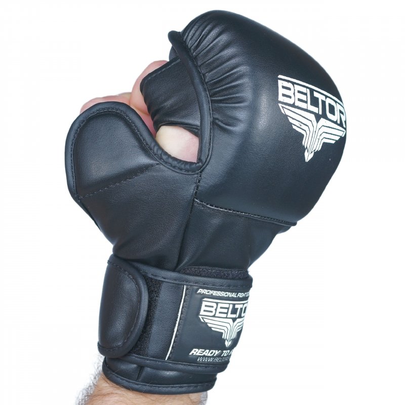 Odsłonięta wewnętrzna część rękawic poprawia możliwości grapplingowe oraz zapobiega poceniu się dłoni podczas treningu. Rękawice zostały wykonane ze skóry syntetycznej o zwiększonej wytrzymałości dzięki czemu są niezwykle trwałe oraz łatwe w utrzymaniu czystości. Wnętrze rękawicy zostało wykonane z gładkiego materiału zapobiegającym obtarciom nawet w trakcie bardzo intensywnych treningów.
