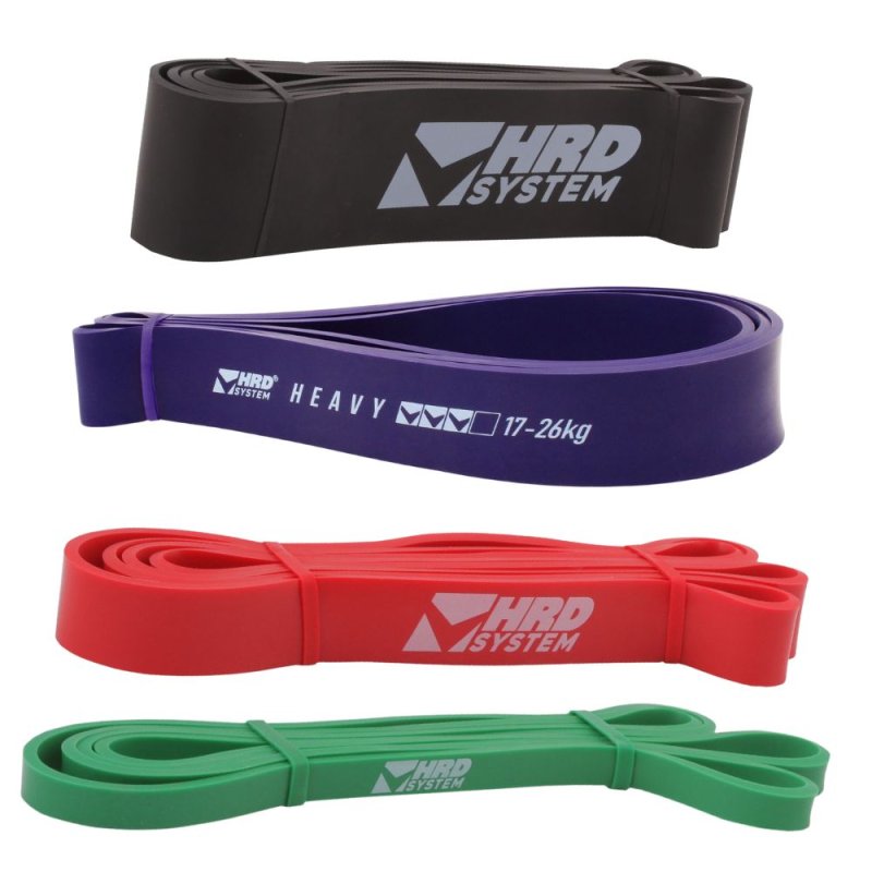 HRD Power Band to bardzo elastyczne lateksowe taśmy przeznaczone do progresywnego obciążenia podczas treningu fitness. 4 różne poziomy oporu!
