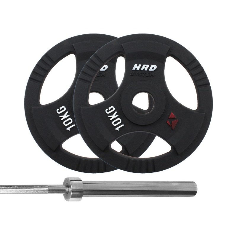 Obciążenie olimpijskie z uchwytami jest starannie wykonanym obciążeniem, które dzięki specjalnym otworom może być z powodzeniem używane zamiast sztangielek. Dzięki takiemu rozwiązaniu można także szybko zmieniać obciążenie na sztandze lub gryfie. Dzięki żeliwu z jakiego zostało wykonane oraz przeznaczeniu do sztang olimpijskich ma ono szczególne zastosowanie w siłowniach profesjonalnych. Obciążenie zostało zabezpieczone specjalną farbą, która chroni je przed działaniem czynników zewnętrznych.